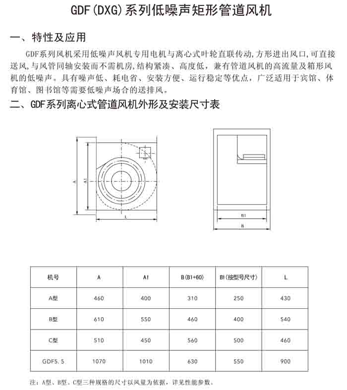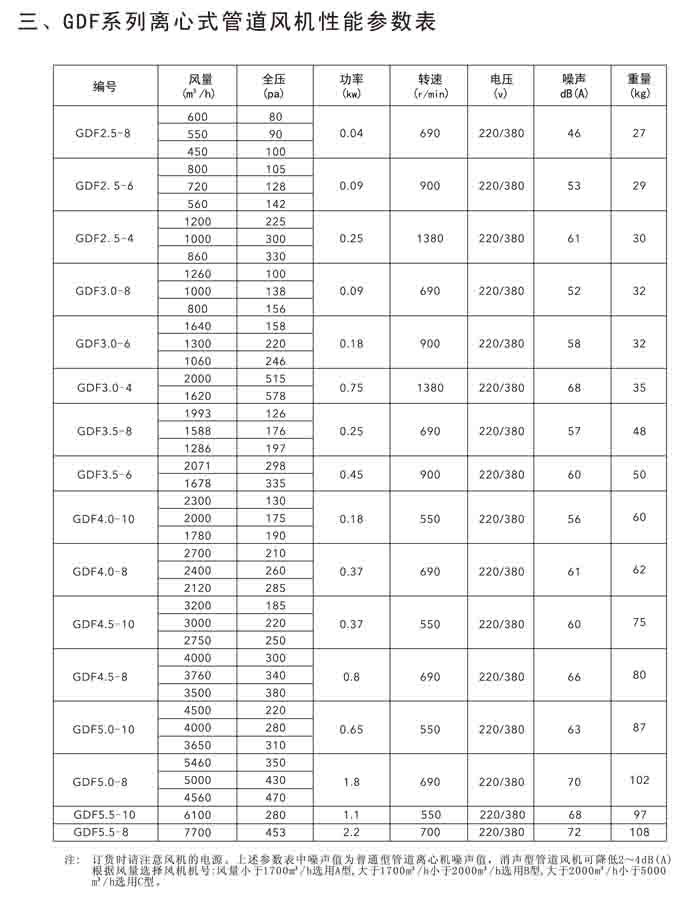 三、GDF 系列低噪聲離心管道風機