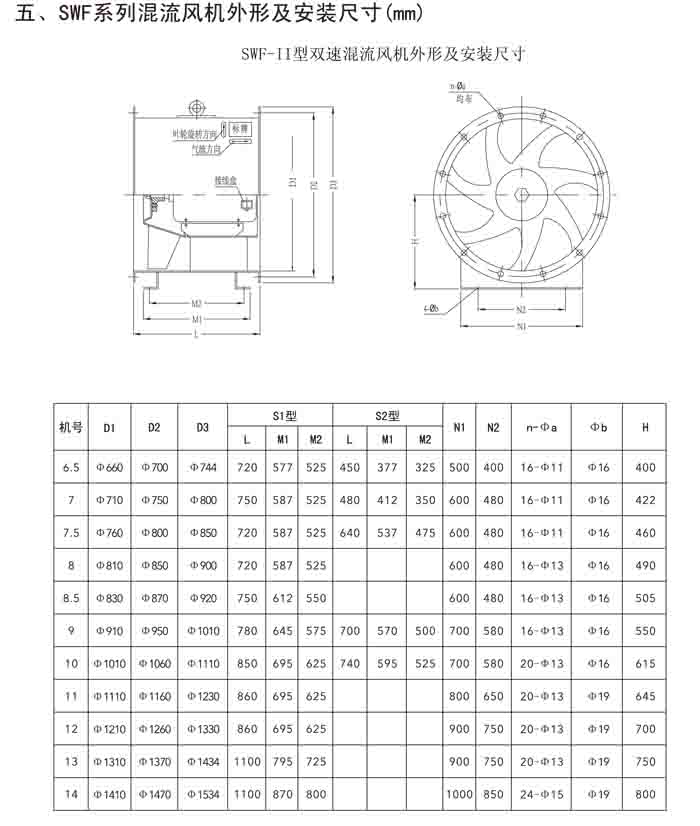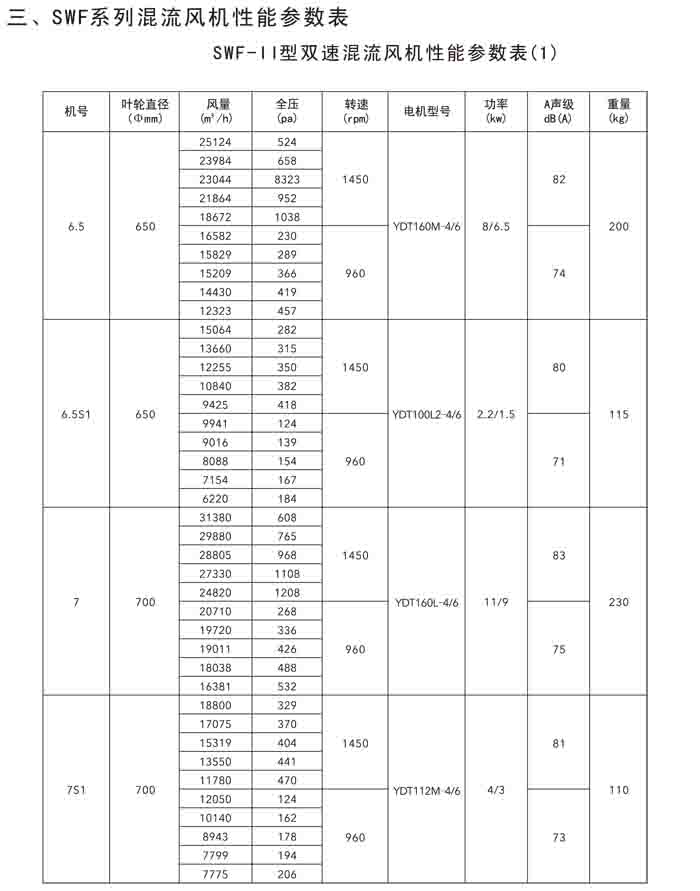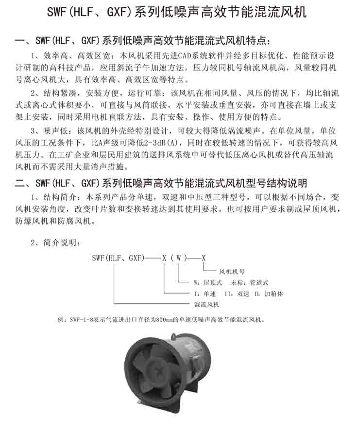 二、SWF(HLF、GXF)-I、II、H 系列高效混流風(fēng)機