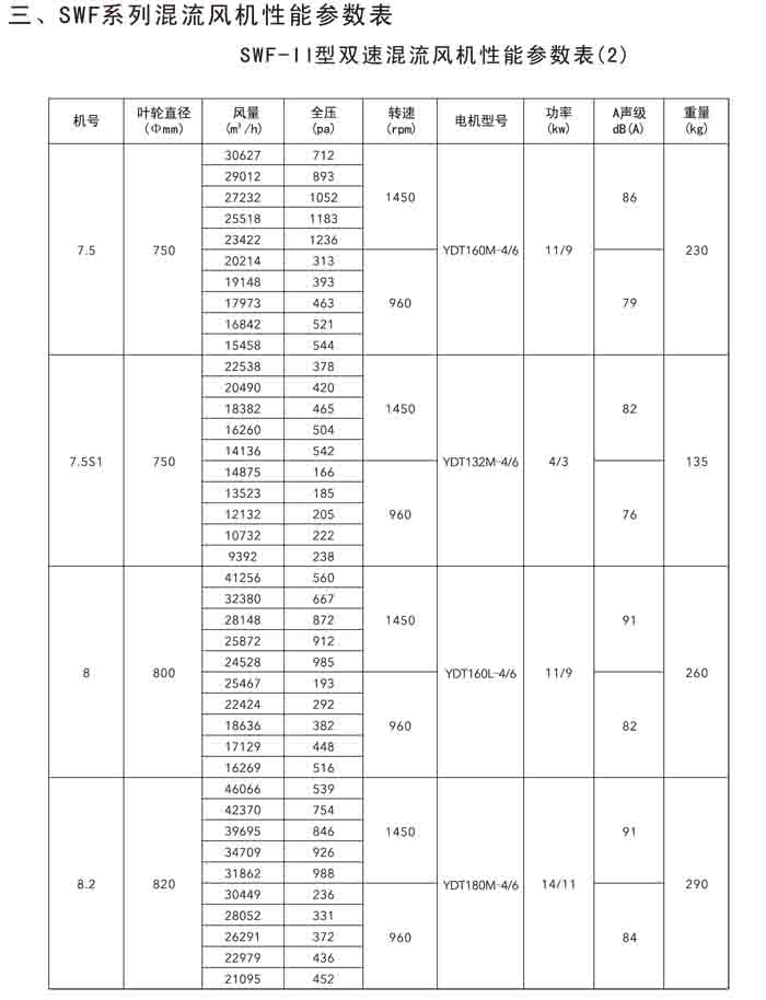 三、SWF-IV(HL3-2A)、HTF-PY(PYHL-14A)系列節(jié)能混流風(fēng)機