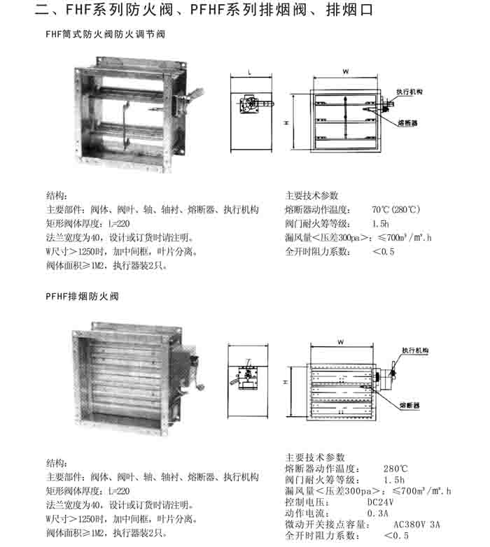 一、FHF WSDc-K、PFHF WSDc-K 系列防火閥、排煙閥、排煙口、送風(fēng)口