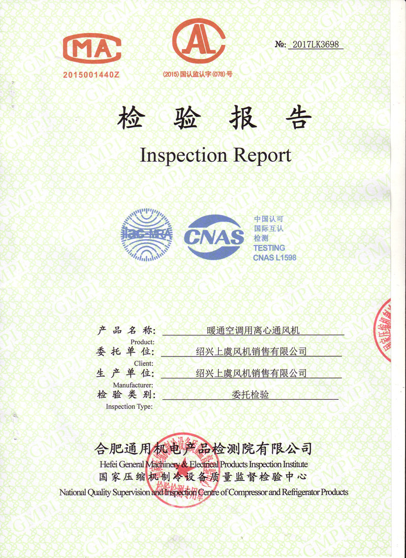 生產(chǎn)許可證檢驗(yàn)報(bào)告低噪聲屋頂風(fēng)機(jī) |