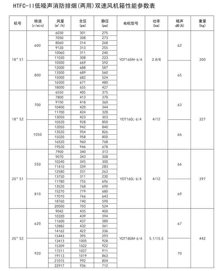 一、HTFC(DT)-I、II、V 系列低噪聲消防排煙(兩用)風(fēng)機(jī)箱